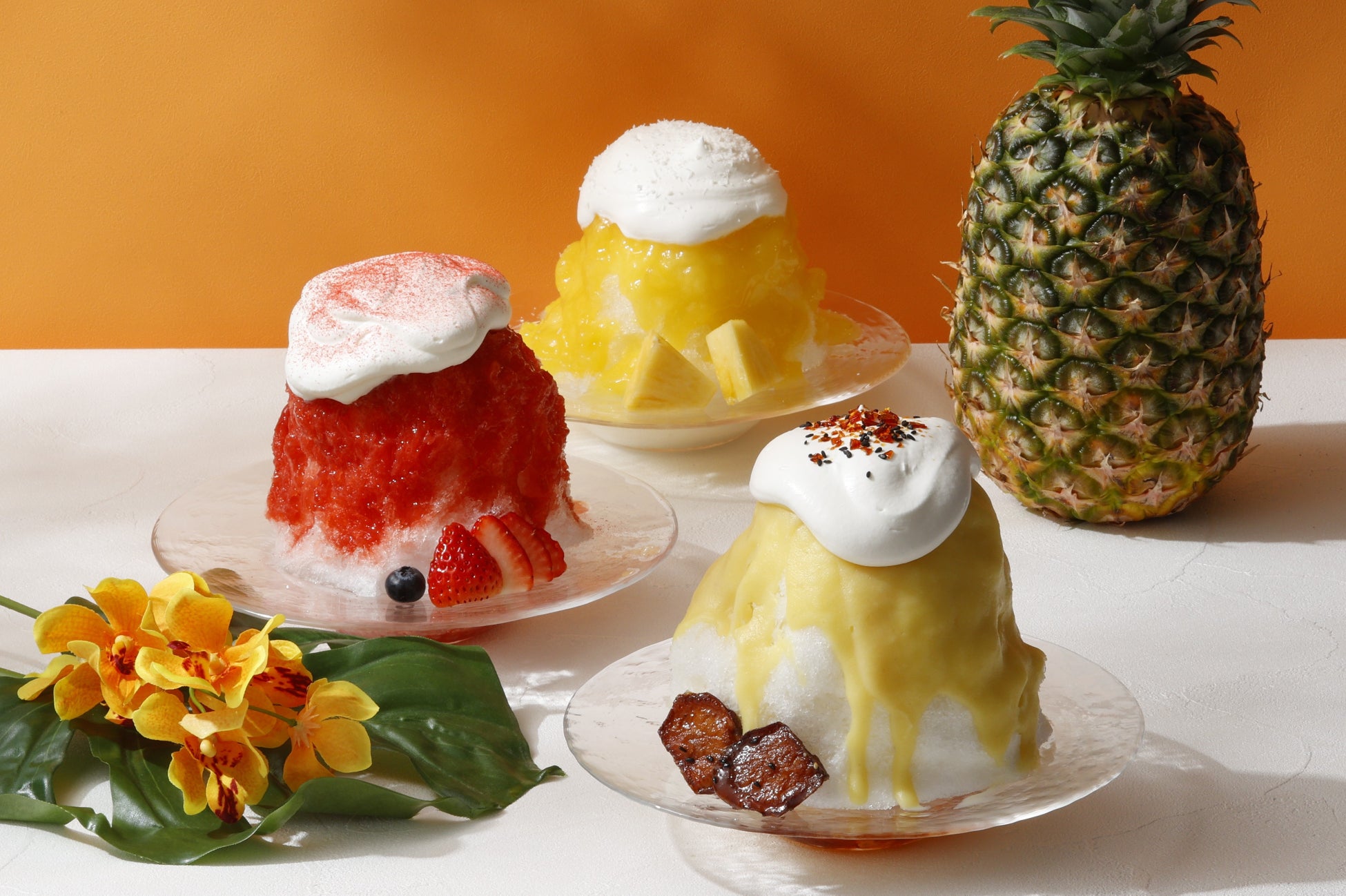 ふわふわかき氷に練乳と生クリームを合わせたとろふわなオリジナルクリームをトッピングし、氷の中にはホテルメイドのコク深い味わいのバニラアイスとそれぞれのフレーバーに合わせたムースを忍ばせました。果肉感とフレッシュな酸味で定番人気の「いちごのフラッペ」のほか、今年の新作として、トロピカルで甘酸っぱい味わいの「パイナップルフラッペ」と和素材を組み合わせた「さつまいもとカシスのフラッペ」の合計3種のフレーバーをご用意しました。暑い夏を心地よくひんやり癒すスイーツを、この機会に心ゆくまでご堪能ください。