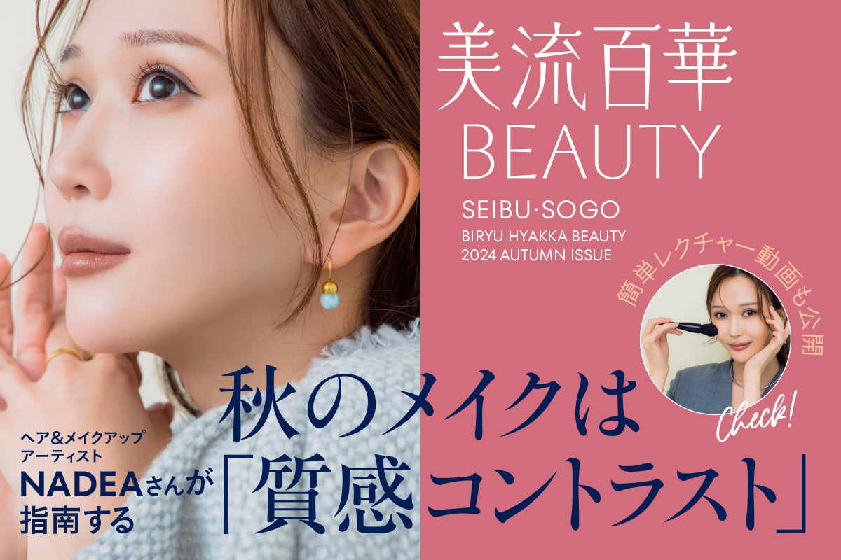 全国的にも猛暑日が続く中、コスメフロアには一足早く秋が到来。秋号では、人気上昇中のヘア&メイクアップアーティストNADEAさんが、「質感コントラスト」をテーマに、新作コスメで簡単に旬の顔になれる秋メイクをレクチャー。またWEBでは、23年2月のサイトリニューアル以降タイムリーにお客さまが気になるコンテンツ配信をしており、直近6か月のPV数は前年の約2倍と大幅に伸長。秋号では、お客さまのニーズの高いレッスン動画やコンテンツを中心に最旬秋メイクをツールの使い方をあわせてご紹介するなど、今取り入れたいビューティー情報をタイムリーに配信いたします。