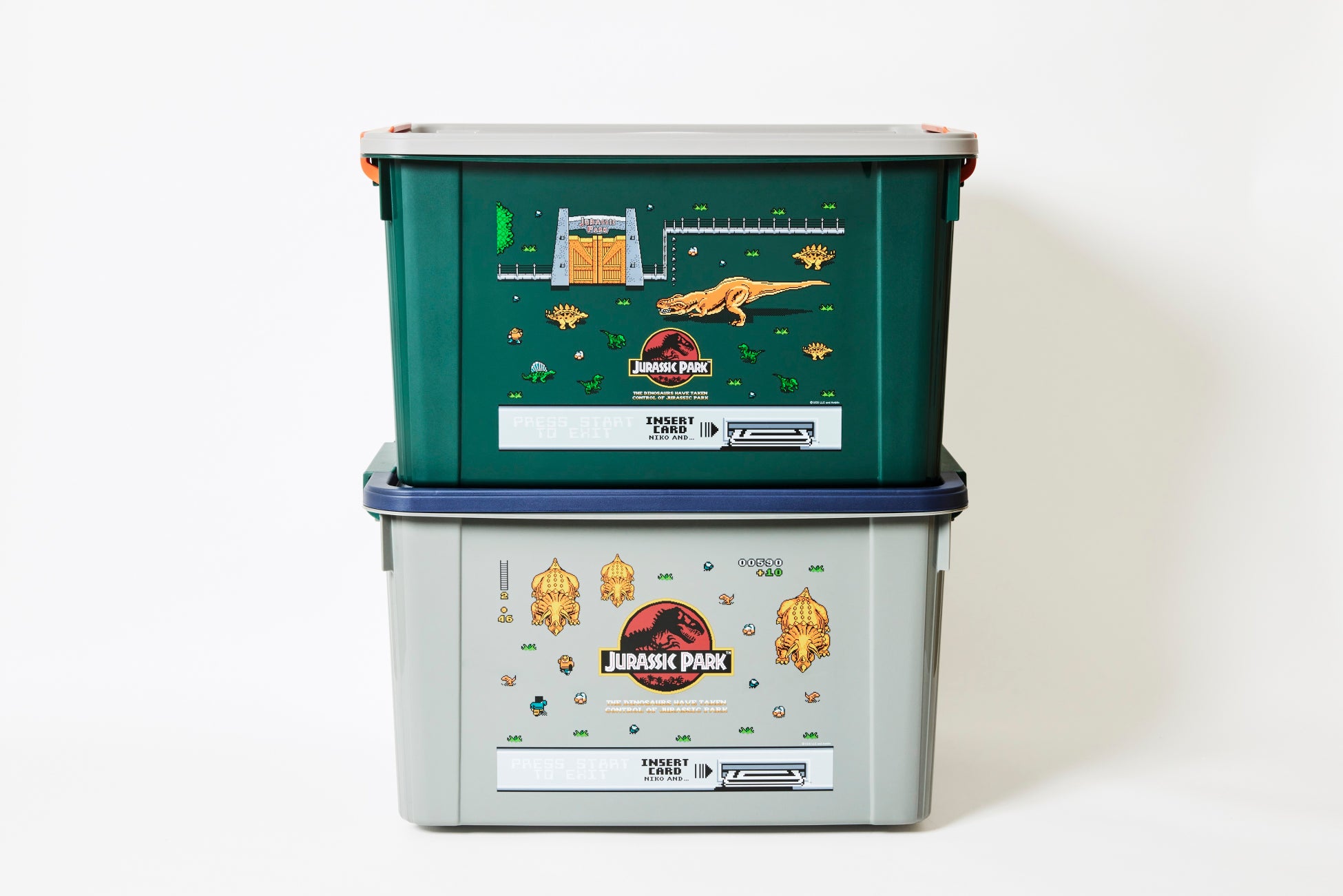 コラボレーションアイテムは「コミック調」のアートと、レトロなゲームの世界観「8bit」の2種のアートワークを使用したコレクションです。保冷バッグやレジャーシート、ビニールガサや収納BOXなどファミリーで楽しんでお使いいただけるレジャーアイテムに加え、恐竜のシルエットやアートをプリントしたTシャツやキャップ、ウエストバッグなどアパレルと服飾雑貨も展開します。
