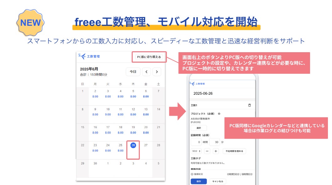 freee工数管理、モバイル対応を開始 スマートフォンからのスピーディーな工数入力で経営を可視化し迅速な判断をサポート