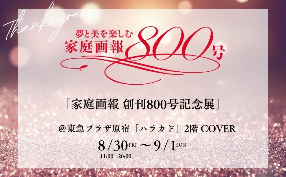 株式会社世界文化社が発行する、本物を追求するライフスタイルマガジン『家庭画報』は、8月30日(金)(関⻄・東海地区は8⽉29⽇)発売の10月号にて、創刊800号を迎えます。これを記念し、8月30日(金)~9月1日(日)まで東京・原宿の東急プラザ原宿「ハラカド」2階 COVERにて、雑誌の世界が体感できる「家庭画報 創刊800号記念展」を開催します。