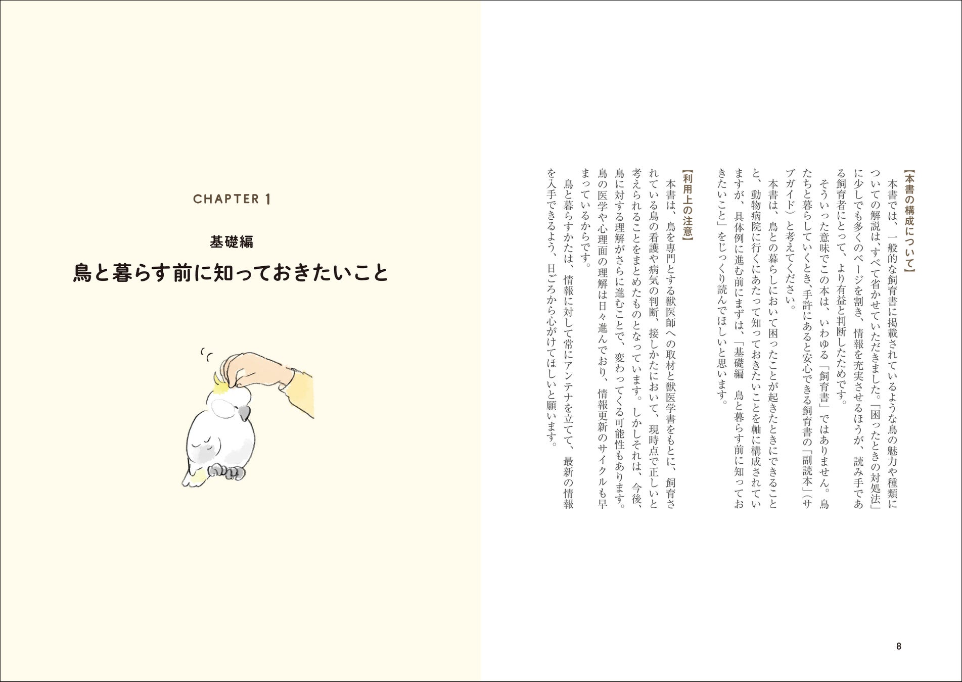 鳥との暮らしにおいて、「起こりうること」を知っておくと、なにかあったときも慌てずに必要な対応をとることができます。そのために、本書を活用していただきたいと思います。