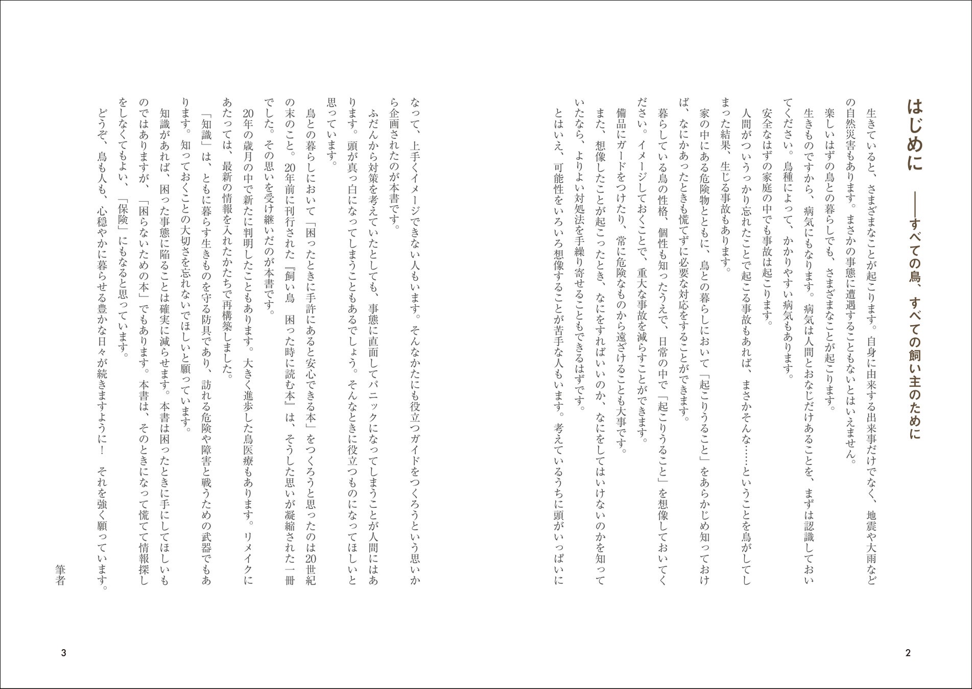 常に手元に置いておき、もしもの時はすぐに開いてください。安心して、鳥も人も幸せに暮らすために持っておいていただきたい1冊です。