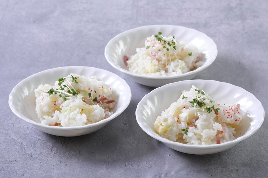 (コーナー料理)渡辺手延製麺所の四日市ひやむぎ/ベーコンとキャベツのリゾット