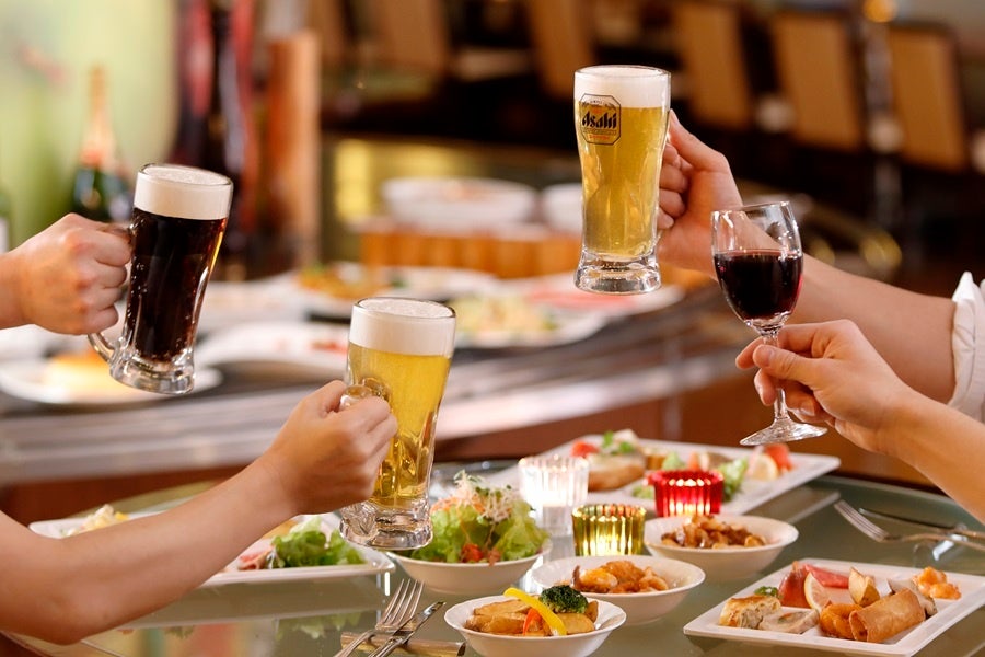 ゴールデンウィークはホテル最上階「ラ・メール」で乾杯!アサヒ生ビールやハイボール、ワインなど各種ドリンクをフリーフローでお楽しみいただけます。お料理はポークスペアリブ、ミートラザニア、枝豆、カプレーゼなど生ビールの進むメニューを揃えました。またタコさんウィンナーやお子様カレーなどキッズコーナーのお料理も充実させました。お子様に楽しんでいただけるよう射的などのイベントコーナーもご用意します。夜景を楽しみながら、ご家族や気のおけない仲間と特別な時間をお過ごしください。