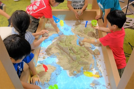 プロジェクションマッピングと深度センサーを組み合わせた新しい砂遊びを体験しよう。