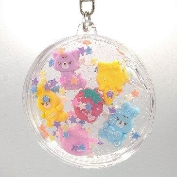 透明なゼリーとパーツ、グリッターを組み合わせてオリジナルキーホルダーを作ろう。
