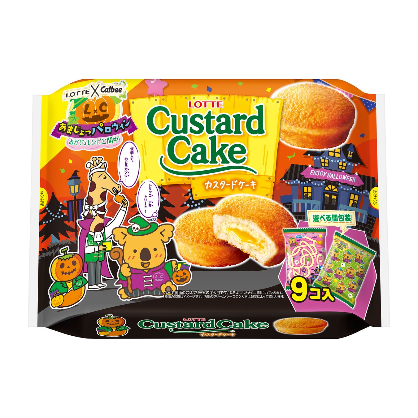 - ロッテの「コアラのマーチくん」とカルビーの「じゃがお」がコラボ した、ハロウィン限定デザインのカスタードケーキです。