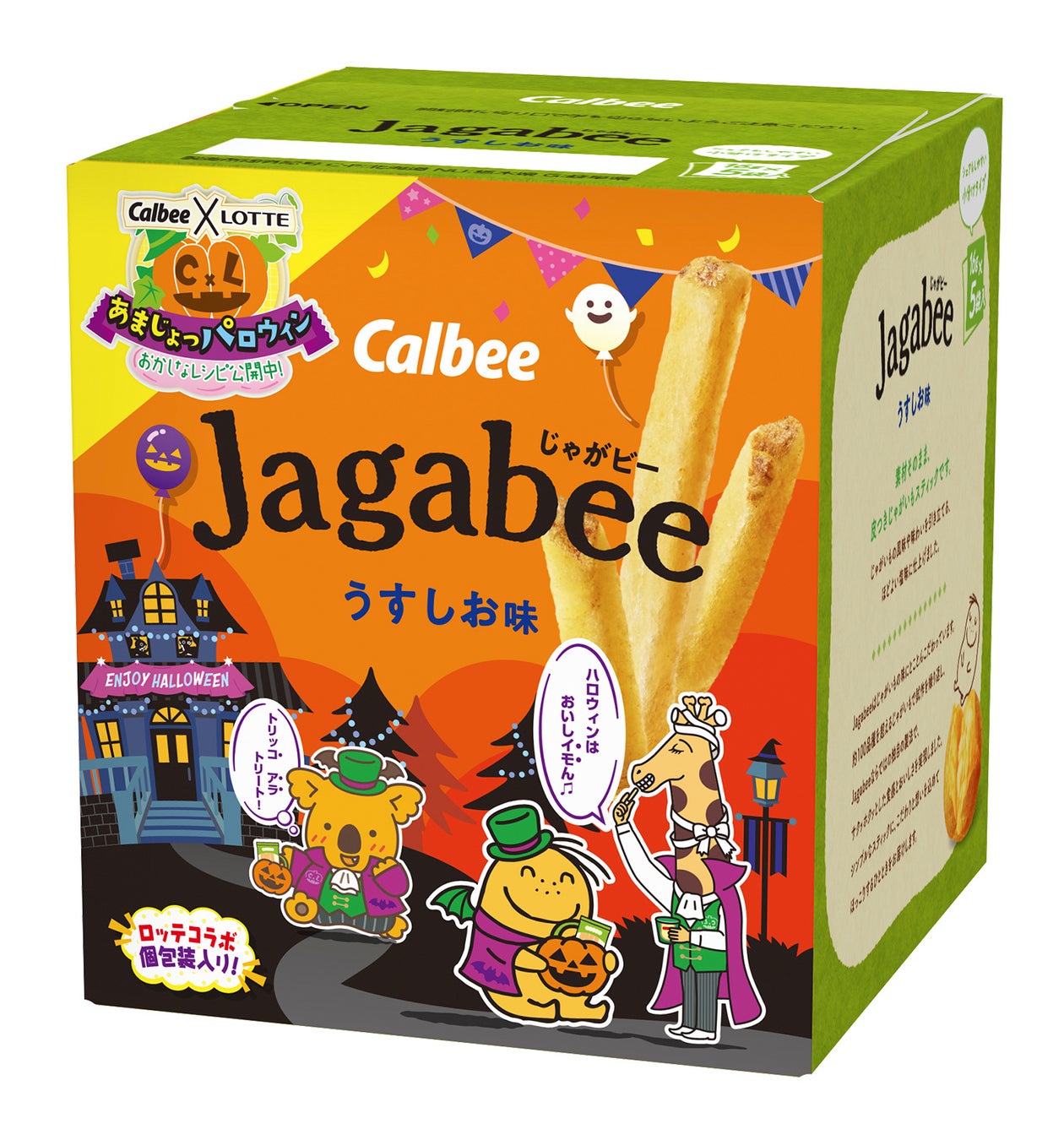 - ロッテの「コアラのマーチくん」とカルビーの「じゃがお」がコラボした、ハロウィン限定デザインです。