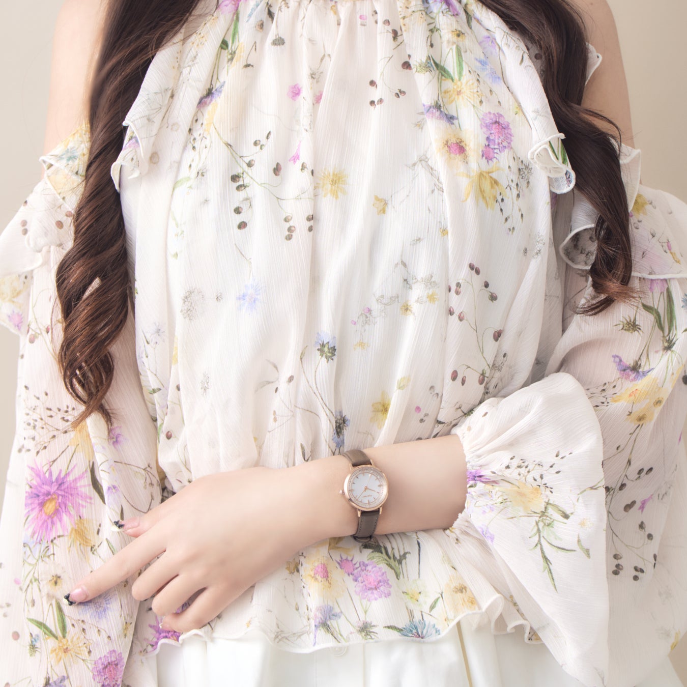 肌にすっと溶け込むようなピンクベージュのレザーベルトが、手元をやさしく明るく見せてくれるモデル。甘くなりすぎない絶妙な色合いで、フェミニンさと上品さをバランスよく両立しました。インデックスまわりにあしらわれたクリスタルが、控えめながらも女性らしい華やかさをプラス。普段使いはもちろん、少し特別な日にも自然に寄り添う、万能な一本です。