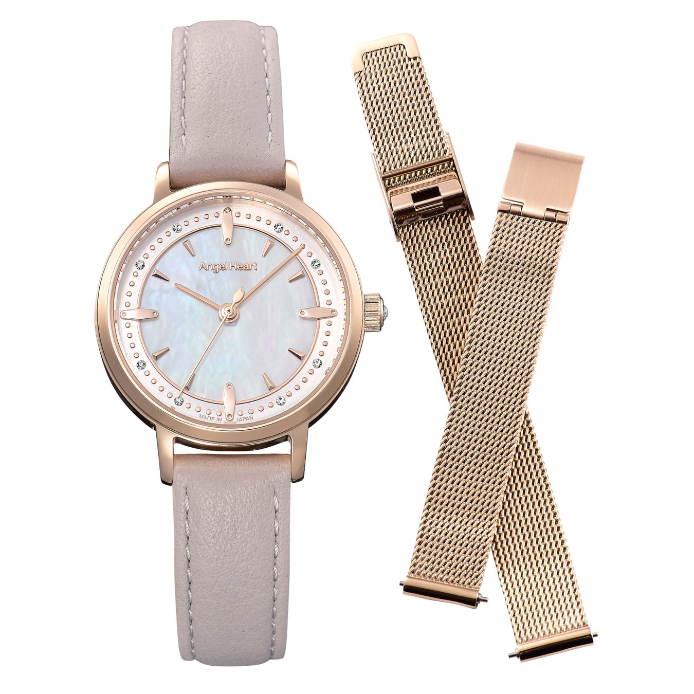 「エンジェルハート」は、進学や入社、新たな一日の始まりなど、人生の大切な節目を迎える女性に寄りそうファーストウォッチとしてぴったりなブランドです。2004年4月に誕生して以来、多くの女性に親しまれています。