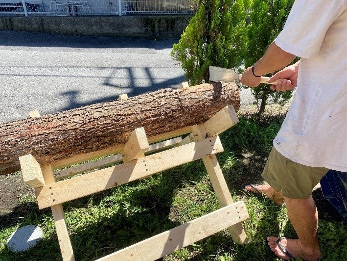 小諸市で自伐型林業に取り組む、DIVERSE LINES CLUBと一緒に木こり体験!持続可能な森づくりの間伐材を利用して、オリジナルの薪割り台をつくるワークショップとなっています。薪ストーブユーザー、森やキャンプが好きな方におすすめです。