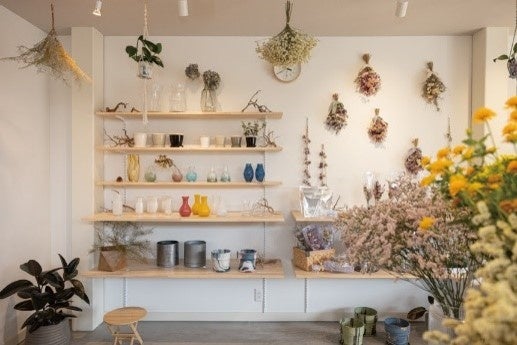 小諸の気候が作り出す色鮮やかなドライフラワーを使用したオリジナルアクセサリーや生花を販売。