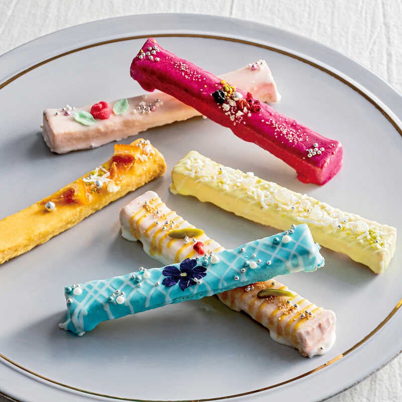 彩り豊かな、夏色のスティックラスク。ドライフルーツやナッツが食感のアクセント。フルーツ果汁を使ったアイシングで1本1本丁寧にデコレーションしました。