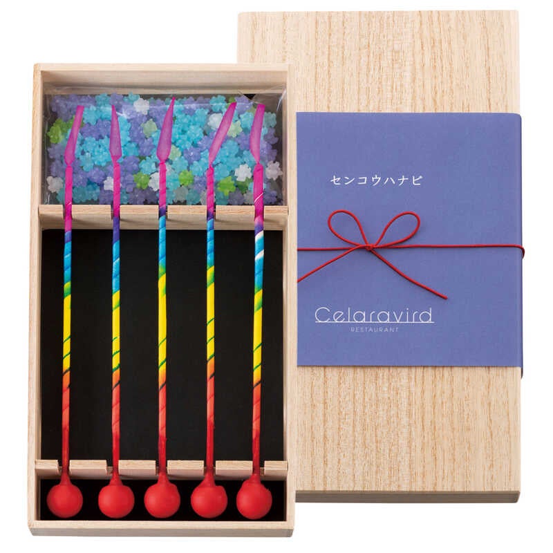 チョコレートが溶けるとホッピングキャンディーがパチパチと線香花火のように弾ける赤いショコラ。同封の二次元コードを読み取ると線香花火の動画も楽しめる。