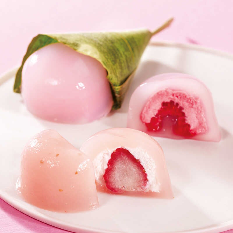 1粒丸々入ったいちご、木いちごをベリームースで包んだ葛まんじゅう。ぷるん&つるんとした食感から果汁感のあるムースが広がり、果肉からも果汁があふれる清涼な夏のデザート。