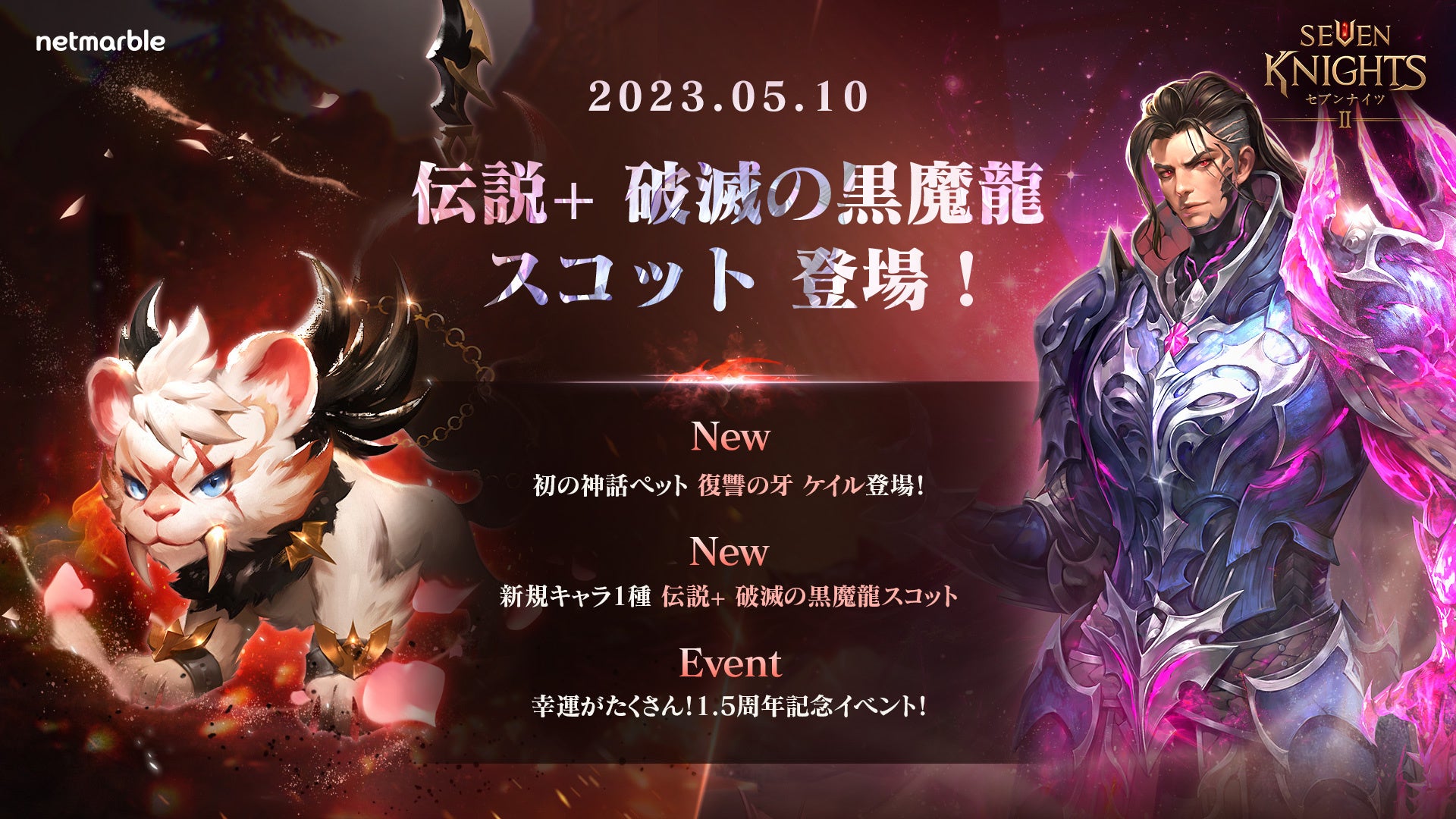 『セブンナイツ2』初の神話ペット登場!新英雄「破滅の黒魔龍 スコット」参戦豪華報酬を獲得できる1.5周年記念イベント開催