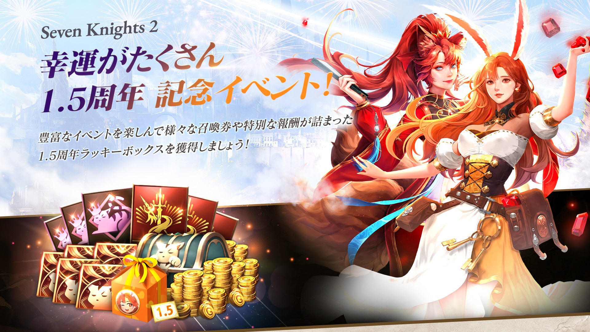 サービス1.5周年を記念して、冒険に役立つ豪華報酬をたくさん受け取れるイベントを多数開催いたします。