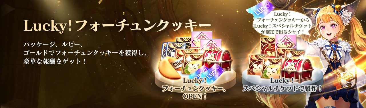 イベント期間中にログインするだけで、「ペットの欠片ボックス」や「希少~伝説ペット召喚券」、様々なアイテムを獲得できる「ラッキー!フォーチュンクッキー」などの豪華アイテムがもらえます。
