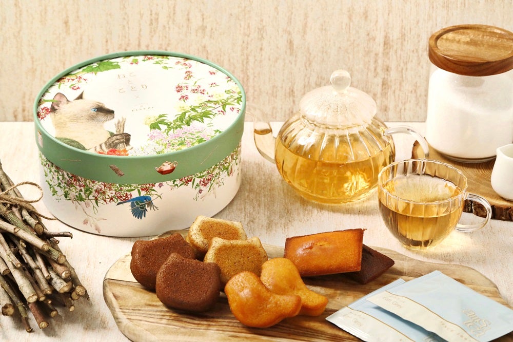 また、絵本に登場する“ねこが紅茶を飲むシーン”をイメージした『ねことことりのアソートギフト』(1個:1,400円税込)や、”小鳥から花を受け取った猫のシーン”が彩られた『ねことことりのプチギフト』(1個:750円税込)も同時発売いたします。
