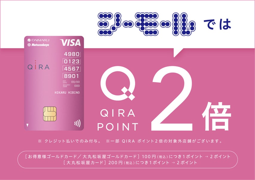 2021年にスタートしたQIRA ポイントの“QIRA” の語源は、輝くことを表す日本語の「キラキラ」。人生に、くらしに、新たな発見や喜びを生み出したい。そして、キラキラと輝くライフスタイルを実現するパートナーでありたいという想いを込めたポイントプログラムです。QIRA ポイントは大丸松坂屋カードのクレジット利用でポイントが貯まります。貯まった QIRAポイントは、大丸・松坂屋ポイント、その他の提携ポイント、特別な体験、バリエーション豊富なモノコトや商品券に交換することができます。