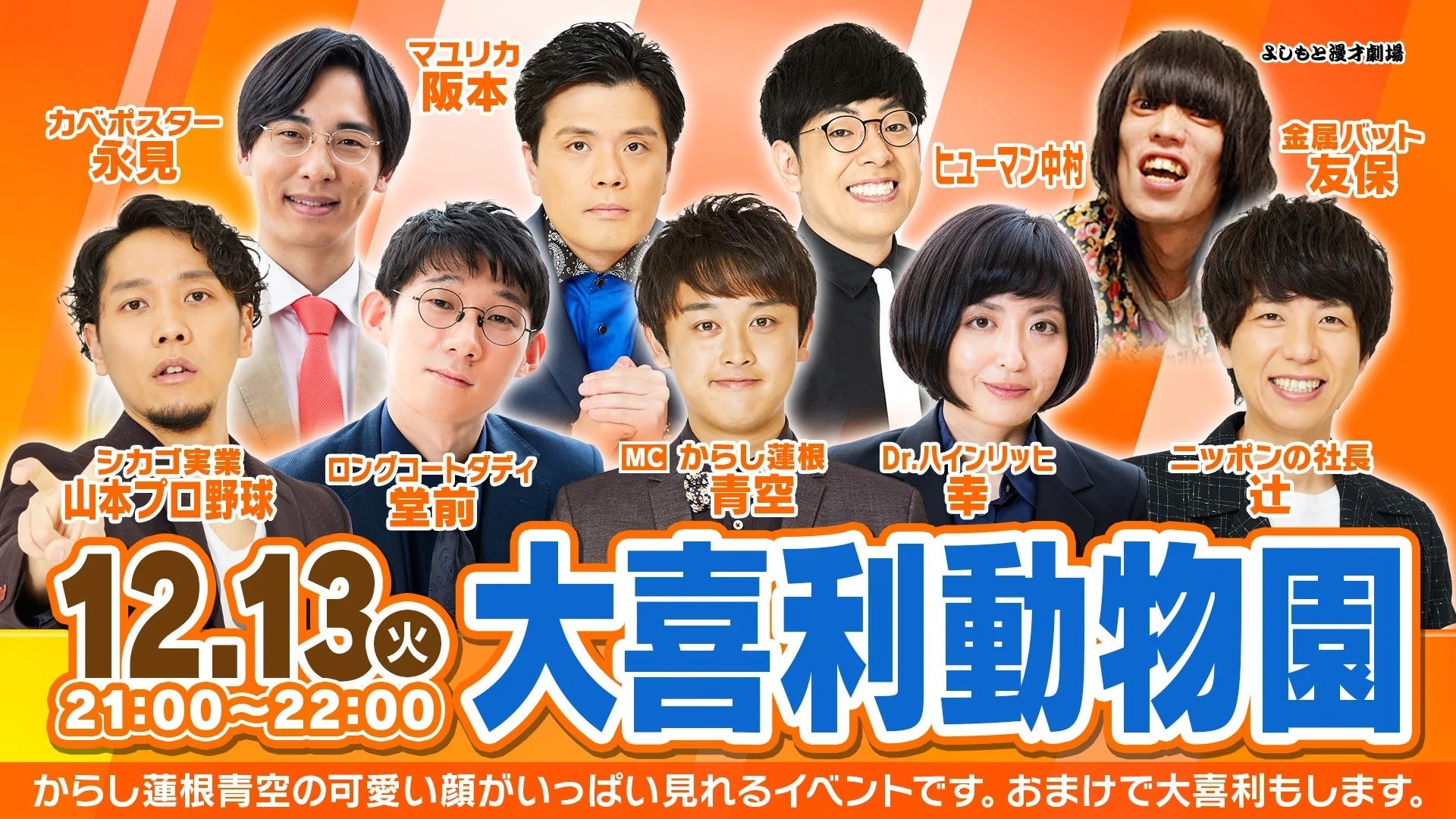 「FANY Online Ticket」は、吉本興業主催を中心としたライブ配信のチケットが買える、吉本興業公式のライブ配信サービスです。より一層多くの方々にライブ配信を知っていただくため、常設劇場や、その他各地で行われるオリジナルの公演を毎週お届けしていきます。今回は、2022年12月9日(金) ~ 12月15日(木)の厳選したおススメ公演を7つピックアップし、ご紹介します。