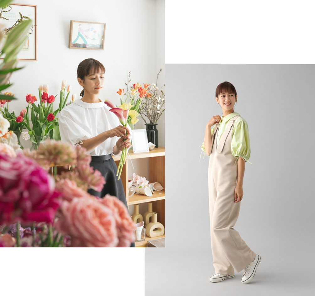 コーデに自信がない方も1枚着ればキマるアイテムで、シンプル・カジュアルすぎないデザインやディテールのあるもので、今は都内でのお花の仕事と鎌倉での生活で服を着替えていますが、どちらでも着られたら嬉しいです。