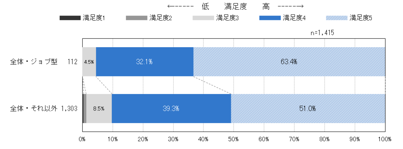 入社予定先がジョブ型雇用だった場合、満足度は高い傾向に【図4、5、6】