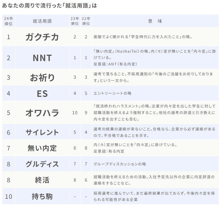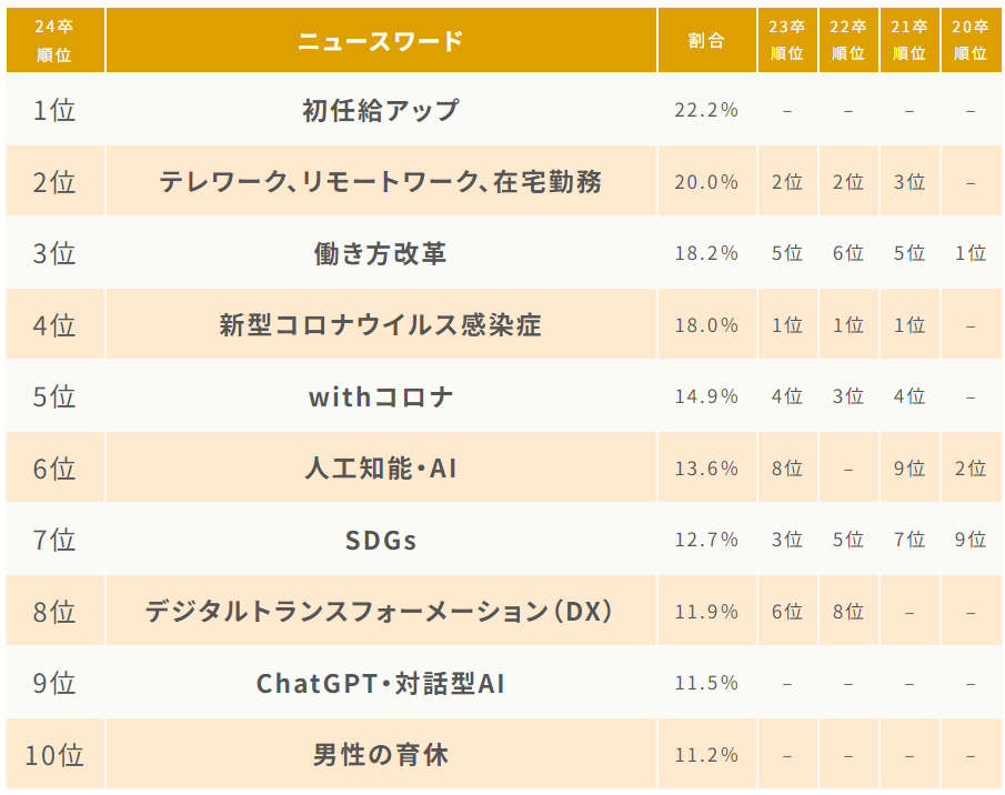 ~就職活動に影響したニュースワードの1位は「初任給アップ」で22.2%流行った「就活用語」の1位は「ガクチカ」。「ノーサー、ノーゼミ」「時短就活」などの新語も~