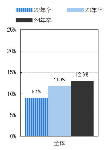 ジョブ型雇用の採用選考に応募したことがある割合は前年比1.0pt増の12.9%。