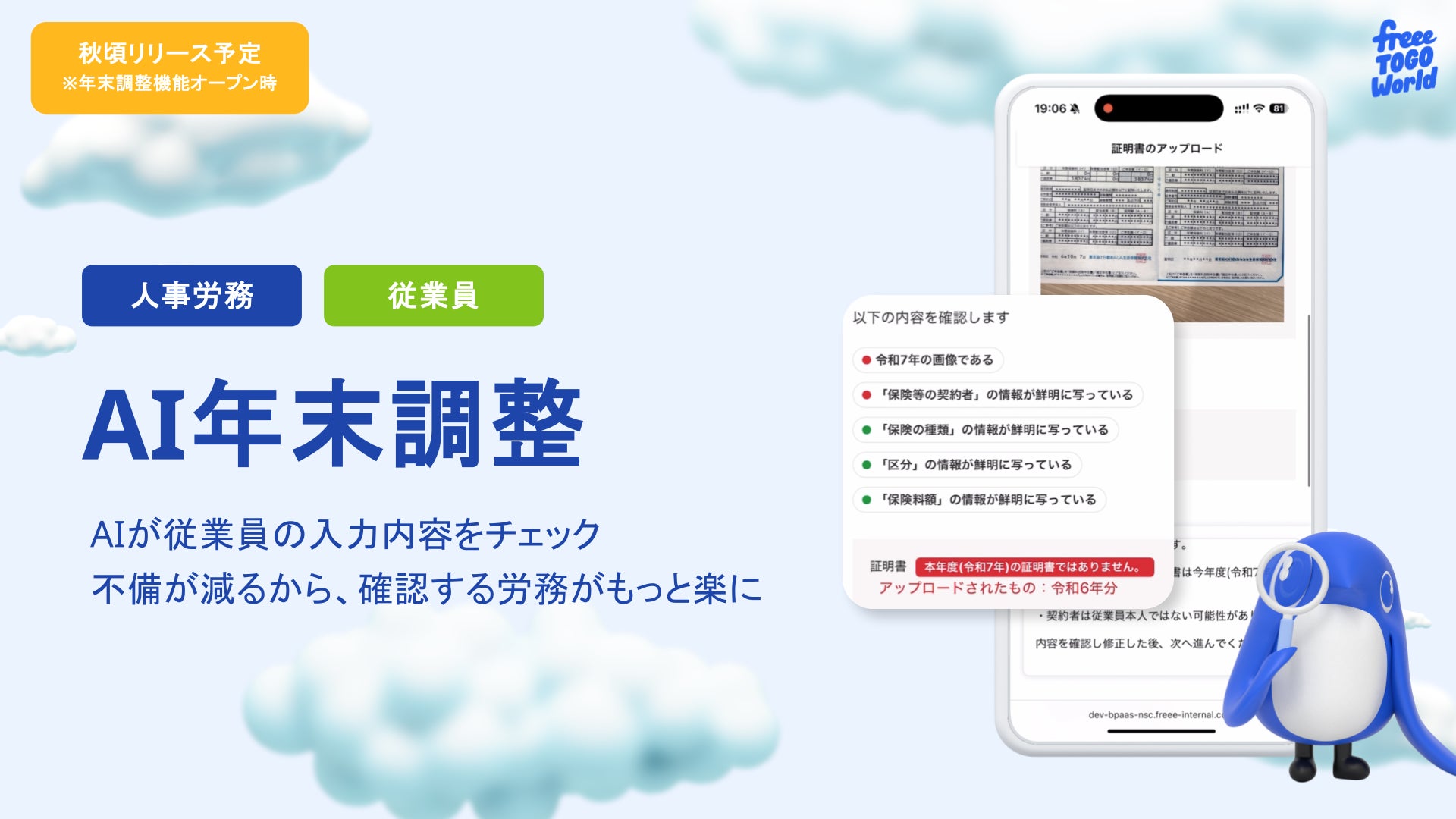 freee人事労務は、2025年秋頃にAI年末調整の提供を開始予定です。