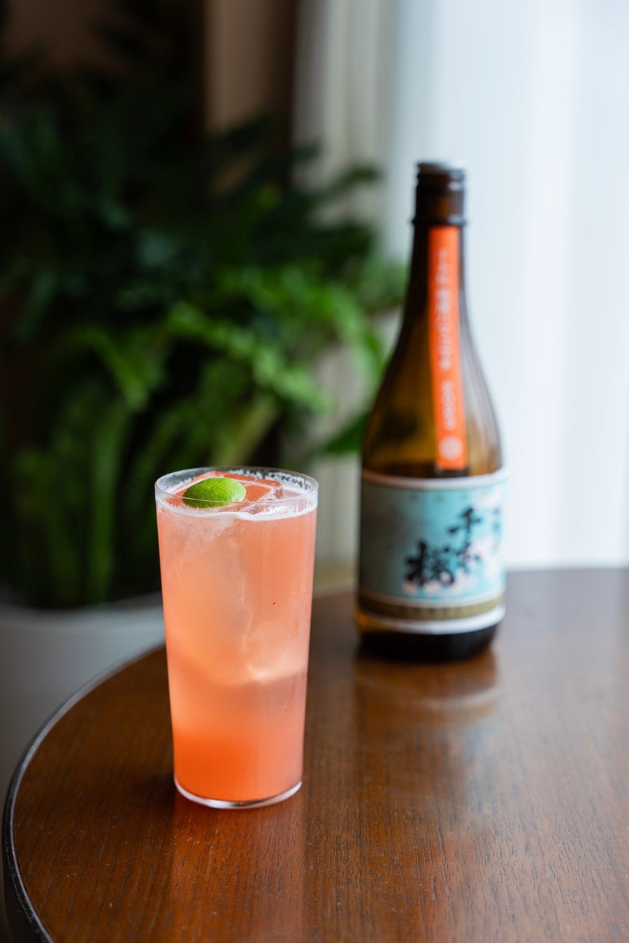 柳田酒造の「千本桜」で、宮崎の陽気な人々とメキシコのパロマというカクテルを繋げて創作した一杯。いつか一人娘が蔵を継いだ時のことを考え工夫を凝らしている柳田さんのエピソードから、フェミニンな印象を持つローズレモネードを合わせました。