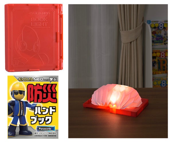 まず、8月31日発売の『小学8年生』 10・11月号に、付録「エボルタNEOくん ブック形どこでもライト」が登場! もしもの時や毎日寝る前などに、お子さんのそばで使える、やさしい光のライトです。