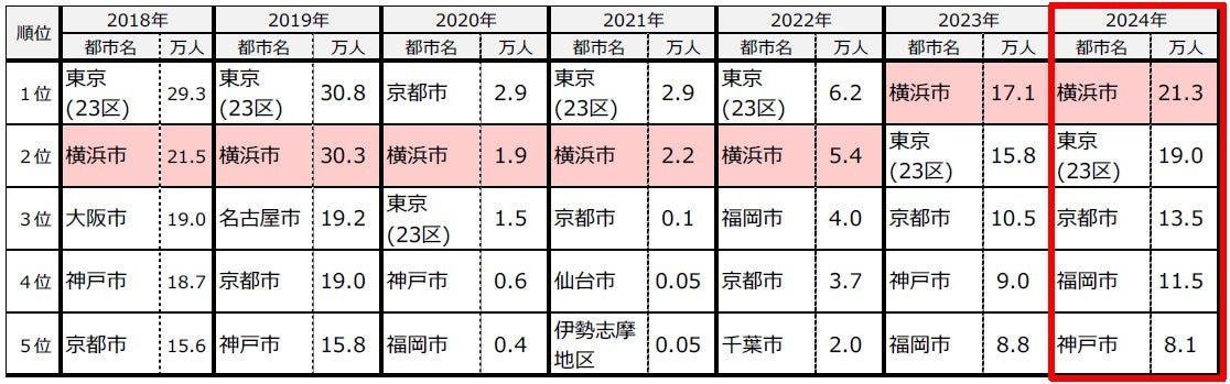 2024年JNTO国際会議統計 横浜市は国際会議参加者総数で2年連続国内1位!
