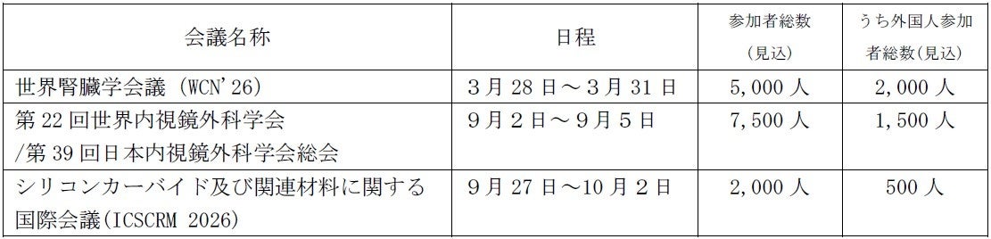 〈2026年に横浜市で開催予定の主な国際会議〉