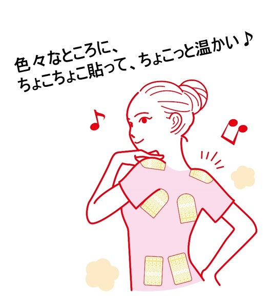 - ラインナップは、肩、背中、足先などに貼りやすい「ラウンドタイプ」と、お腹、腰などに貼りやすい「スクエアタイプ」の2種類です。