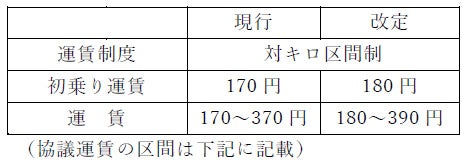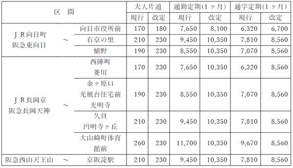 なお、長岡京市域の運賃改定については、関係市町との協議により合意された協議運賃を導入いたします。