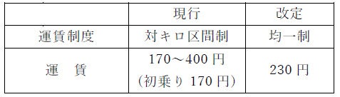 ・初乗り運賃を2019年4月19日付認可の上限運賃に改定し、以降の区間を20円~40円改定します。(協議運賃の区間を含む)