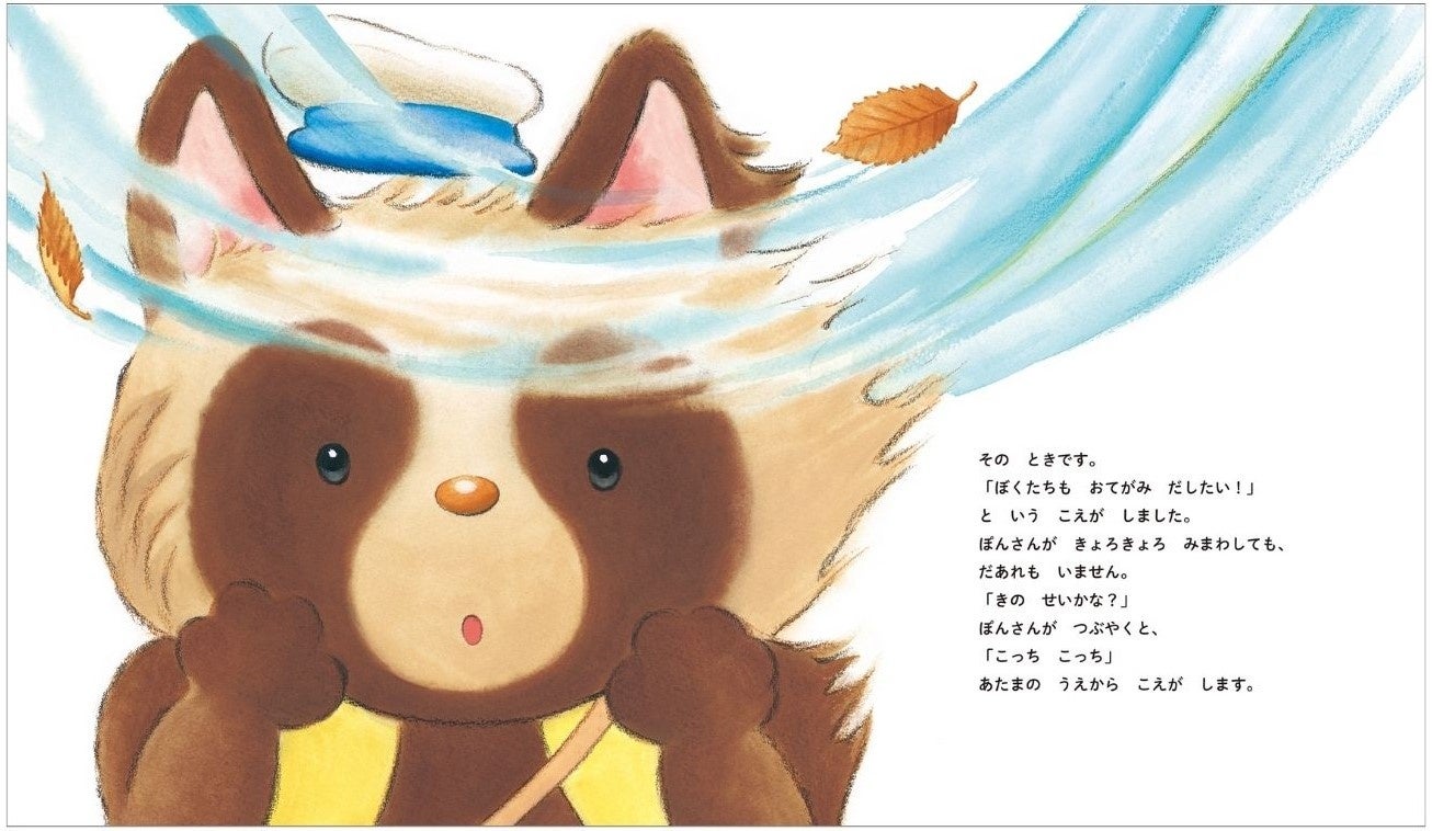 たぬきのぽんさんは山の郵便屋さん。書くのももらうのも嬉しい葉っぱでできたお手紙を、毎日動物たちに届けます。ある日、どこからか「僕たちもお手紙出したい!」と不思議な声がして……。ぽんさんが届けるのは、手紙だけでなく大切な人を想う気持ちです。心温まる秋の宝物のような一冊です。
