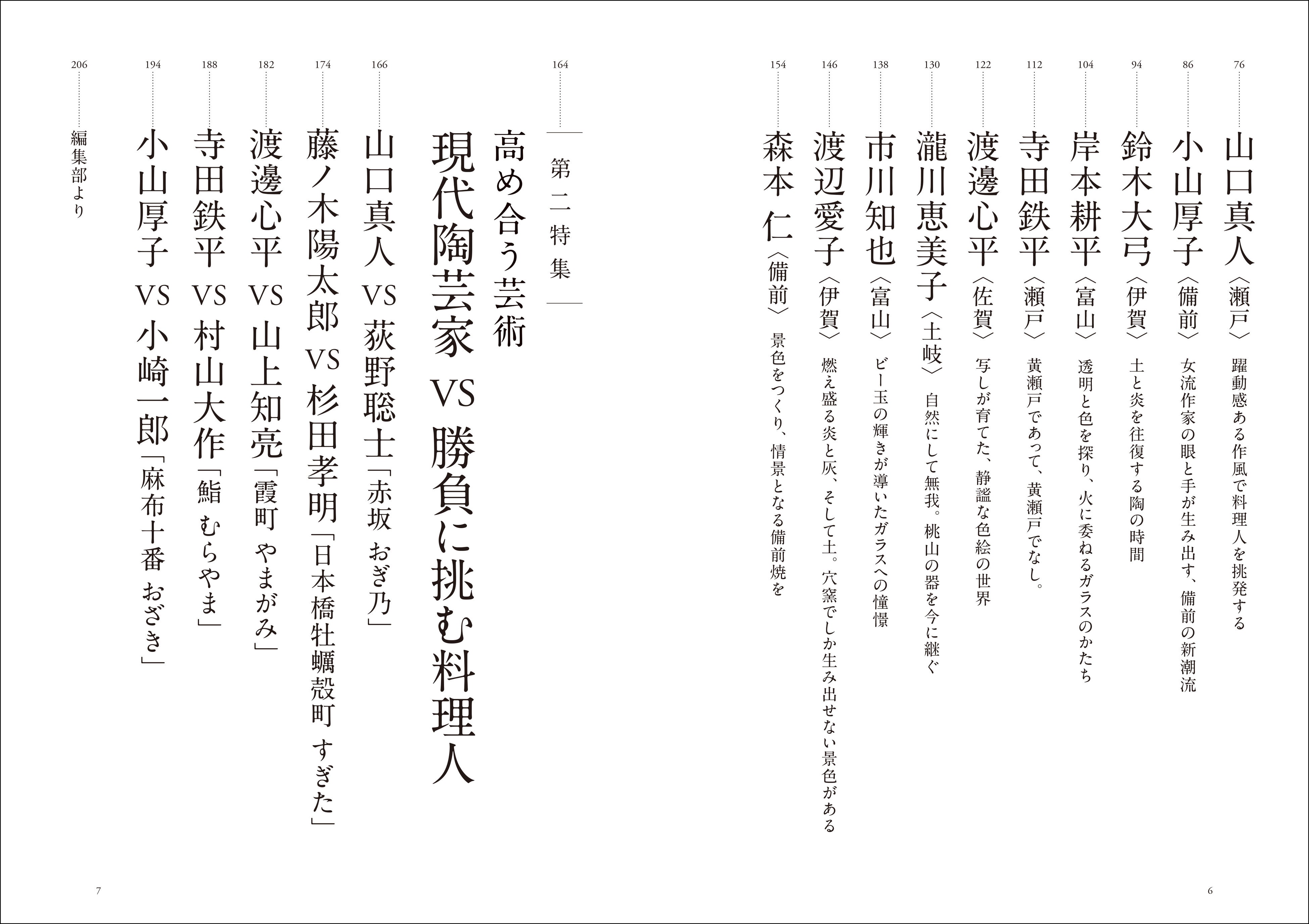 古谷和也〈信楽〉/藤吉憲典〈福津〉/西岡 悠〈美濃〉/渡辺 聡〈備前〉/藤ノ木陽太郎〈唐津〉/ 荒川尚也〈京都〉/山口真人〈瀬戸〉/小山厚子〈備前〉/鈴木大弓〈伊賀〉/岸本耕平〈富山〉/寺田鉄平〈瀬戸〉/渡邊心平〈佐賀〉/瀧川恵美子〈土岐〉/市川知也〈富山〉/渡辺愛子〈伊賀〉/森本 仁〈備前〉