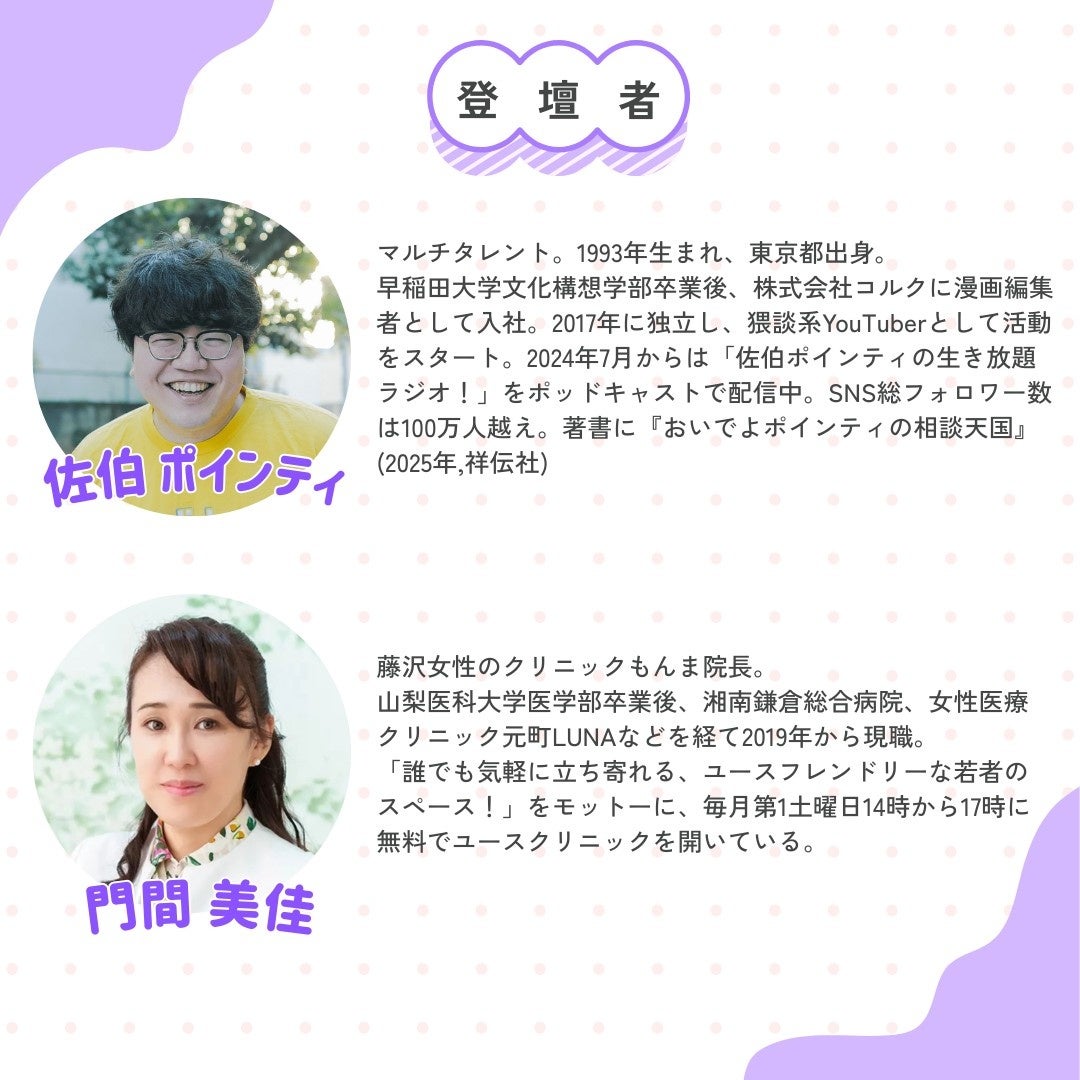2月28日(土)開催!\人気YouTuber 佐伯ポインティと産婦人科医が登壇/ 若者の性の悩みに向き合うトークイベントを横浜で開催【先着】
