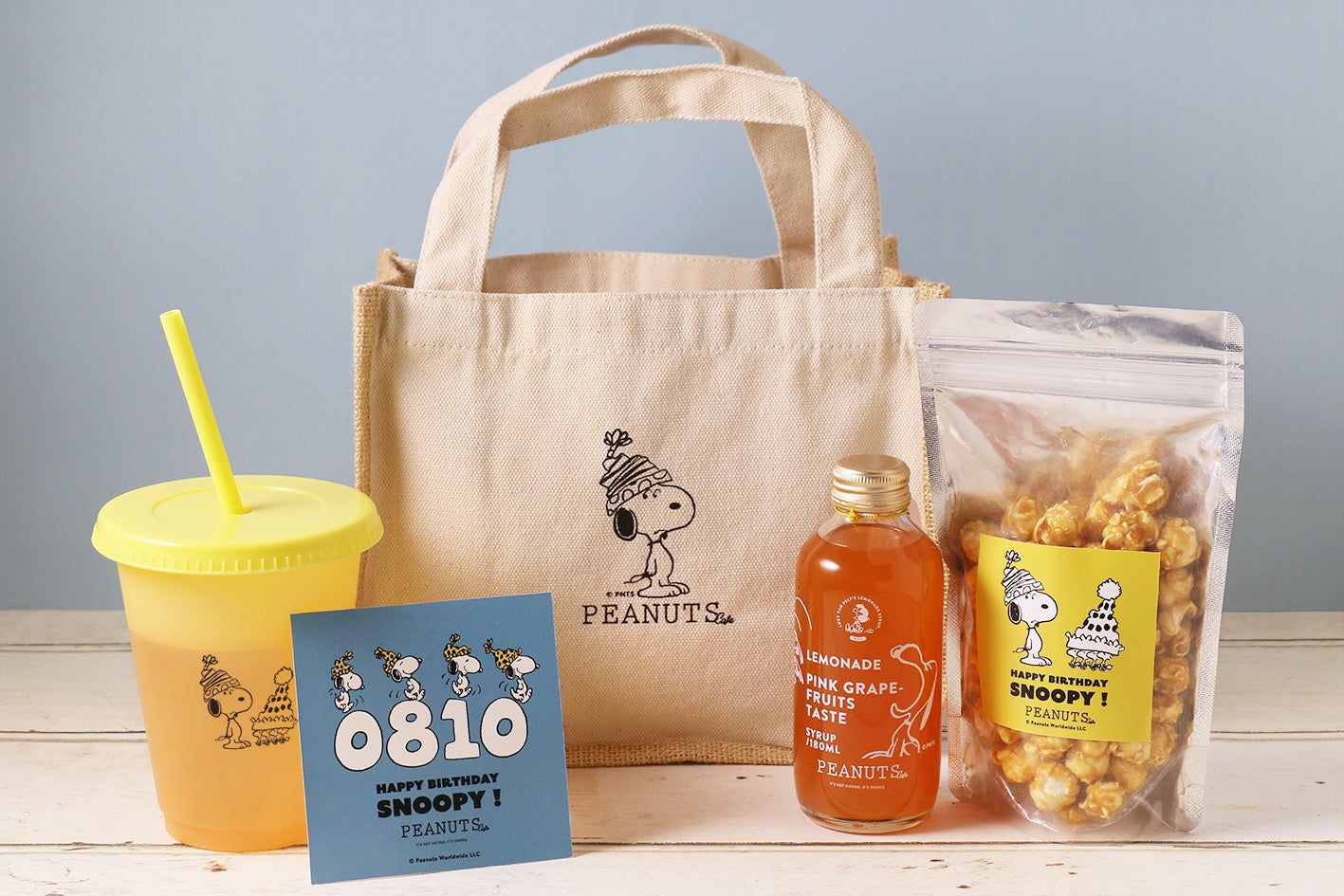 スヌーピーのバースデーを記念して、PEANUTS Cafe オリジナルアートを施したアイテムが詰まったバースデーバッグ。