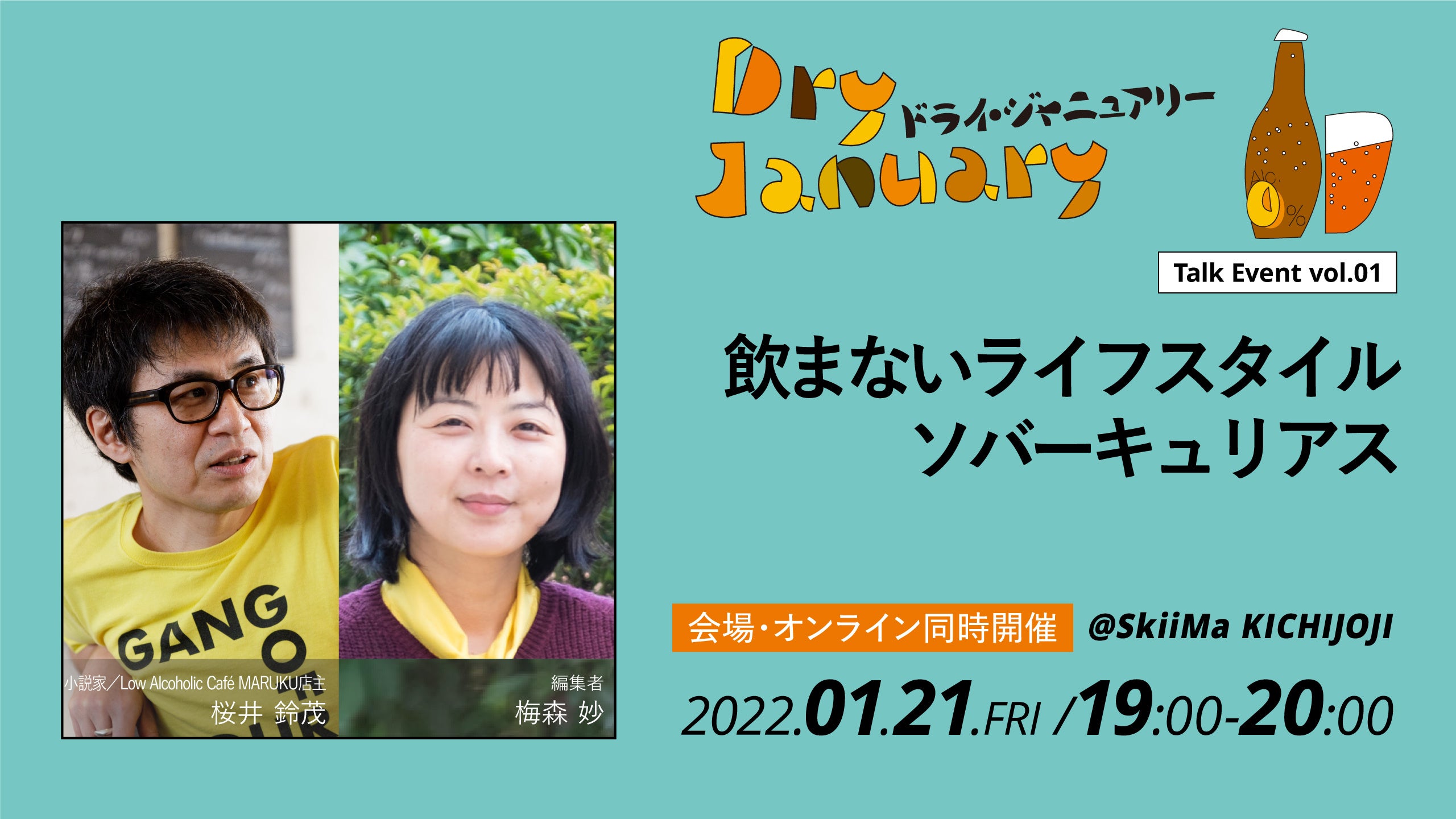 第一弾は「飲まないライフスタイル ソバーキュリアス」をテーマに、ノンアルコール専門EC「MARUKU」オーナーであり小説家の桜井鈴茂さんと、書籍『飲まない生き方 ソバーキュリアス』編集者の梅森妙さんをお迎えします。