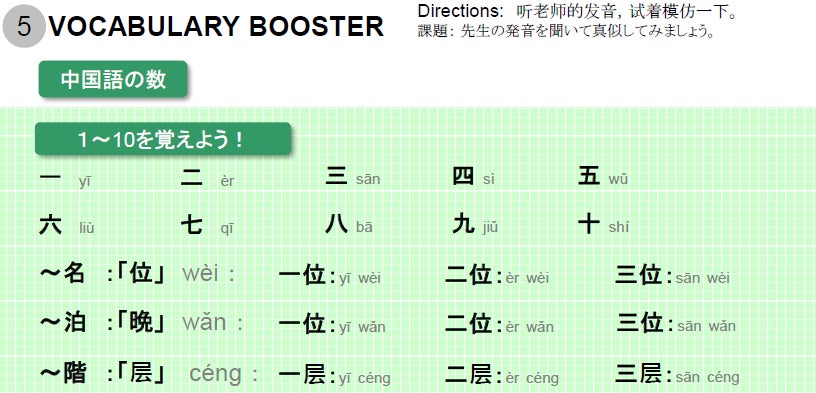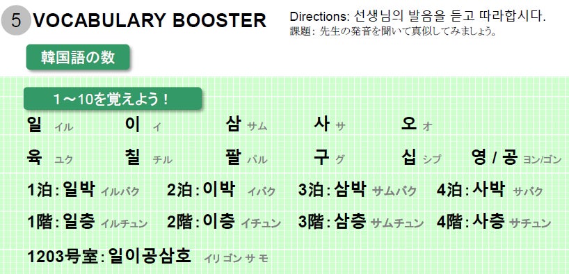 ポイント2:数字、時間、曜日などの重要単語も習得可能
