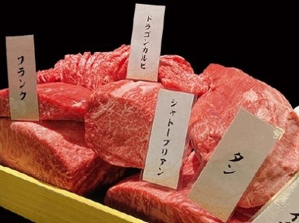 和牛のミスジやイチボ、シャトーブリアンなどの希少部位を中心に、その場でオーダーカットして焼き上げます。