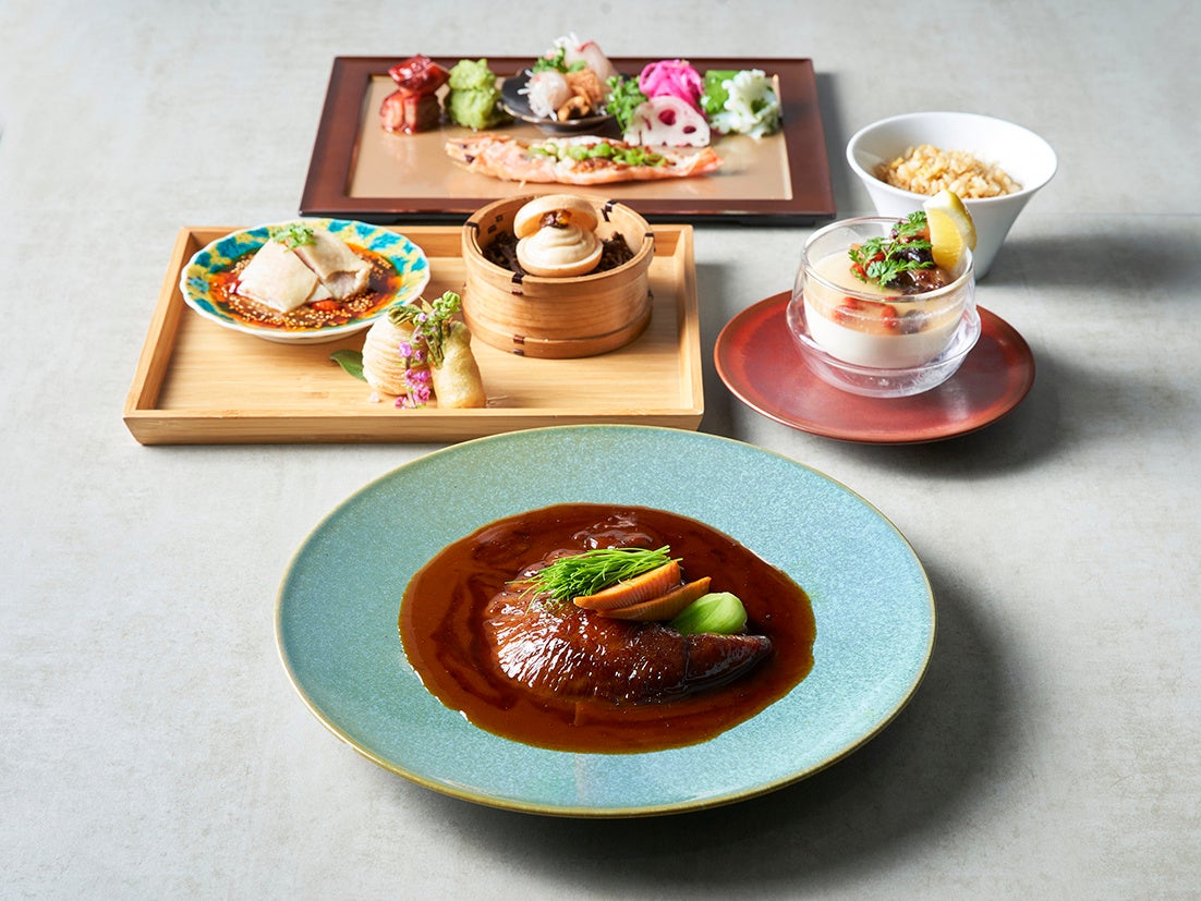 大ぶりでコクのあるフカヒレ姿煮込みをメインに、ジューシーな口水鶏(よだれ鶏)、人気の紹興酒クリームチーズ最中などが入ったコースをご用意。