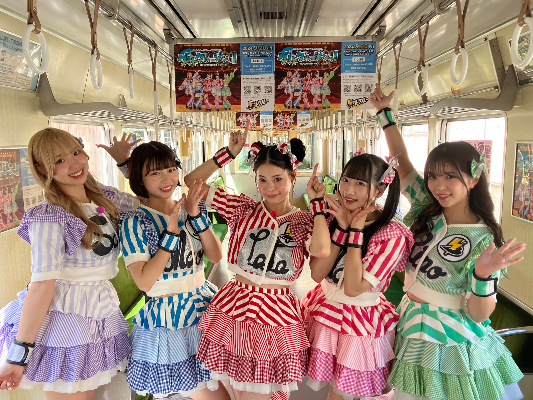 メンバーの手で車内をワンマンライブの告知ポスターで埋め尽くし、5人のイラストが描かれたヘッドマークをつけた車両「グックル号」が完成!このグックル号は、9月30日まで、神戸電鉄全線(公園都市線を除く)で運行予定!出会えたらラッキーです!