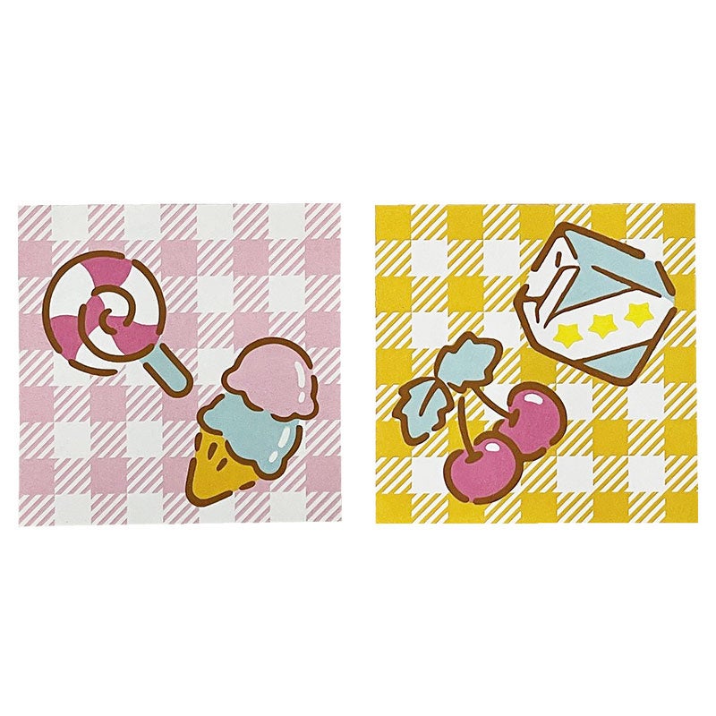 デザインが両面に入っており、「ポチャッコ」、「ウィアーダイナソアーズ!」、「パティ&ジミー」、「バッドばつ丸」、「けろけろけろっぴ」、「ハローキティ」の6種をラインアップ。お手持ちのぬいぐるみやアクリルスタンドなどと合わせて飾っていただくのもおすすめです。
