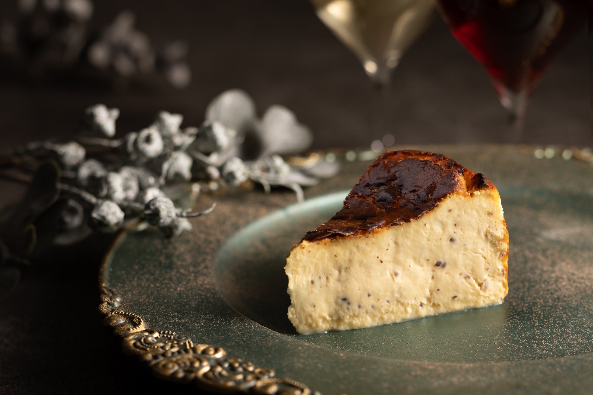 レッスン後はアペリティフ(スパークリングワイン/赤ワイン/白ワインより選択)を、さらにアペリティフに合わせて都ホテル 博多のパティシエが考案した、ビターな大人のチーズケーキをお楽しみいただきます。