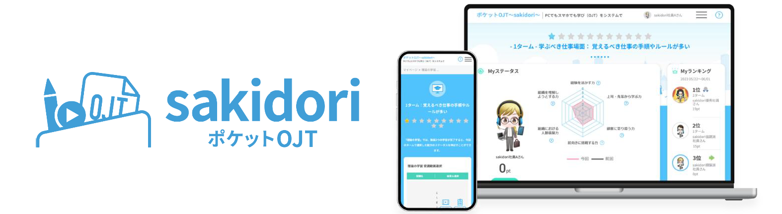 『ポケットOJT~sakidori~(以下sakidori)』は、活躍する若手社員を育成するためのOJT支援システムです。『sakidori』を使用することで、受講者は学習フローに沿って自発的に学習を進めることができるため、既存社員の教育業務負荷を軽減しながら、OJTを進めることができます。人事担当者や上司、先輩社員もアカウントを作成することができ、チャットや掲示板、週報などの機能からコミュニケーションをとることも可能です。